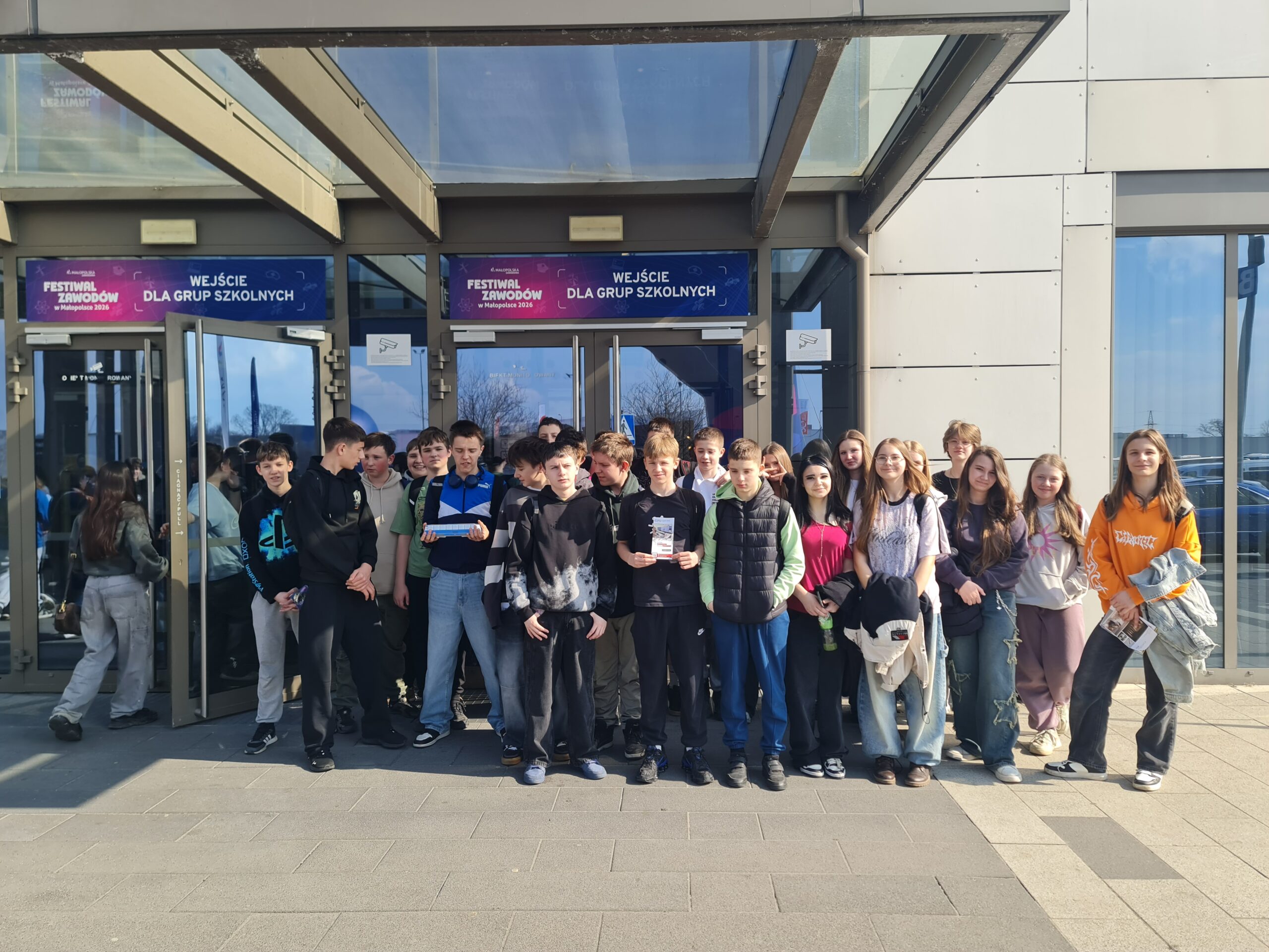 Uczniowie pod opieką Pań : mgr Małgorzaty Trzebońskiej, mgr Marty Gołuszki i mgr Małgorzaty Mlak mieli okazję zapoznać się z ofertą prezentujących się w w Międzynarodowym Centrum Targowo-Kongresowe EXPO w Krakowie szkół z Małopolski.W wydarzeniu udział wzięło ponad 120 wystawców, którzy zaprezentowali się w 9 strefach tematycznych od kierunków technicznych, przez branże usługowe, aż po służby mundurowe. Nie zabrakło również strefy przedsiębiorców i nowych technologii.Uczniowie mogli zobaczyć interaktywne prezentacje zawodów z różnych branż, spróbować samodzielnie wykonać prace na przygotowanym wspólnie z pracodawcą stanowisku, porozmawiać ze starszymi uczniami oraz doradcami zawodowymi na temat wyboru dalszej ścieżki edukacyjnej.Uczestnicy Festiwalu Zawodów przygotowali także dla uczniów szkół podstawowych broszury z informacjami na temat swoich szkół. Mamy nadzieję, że udział w tym wydarzeniu ułatwi naszym siódmoklasistom podjęcie decyzji o wyborze szkoły ponadpodstawowej po ukończeniu ósmej klasy.
